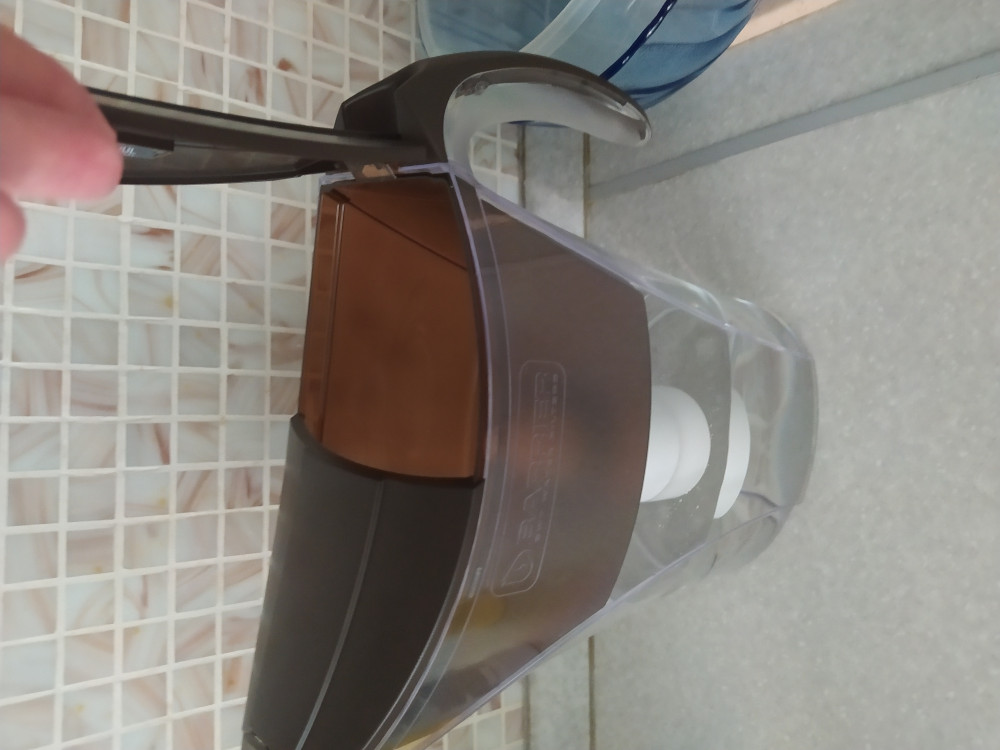При наполнении кувшина не надо поднимать крышку. Под напором воды крышка сама открывается. И реально у фильтрованной воды хороший вкус.
