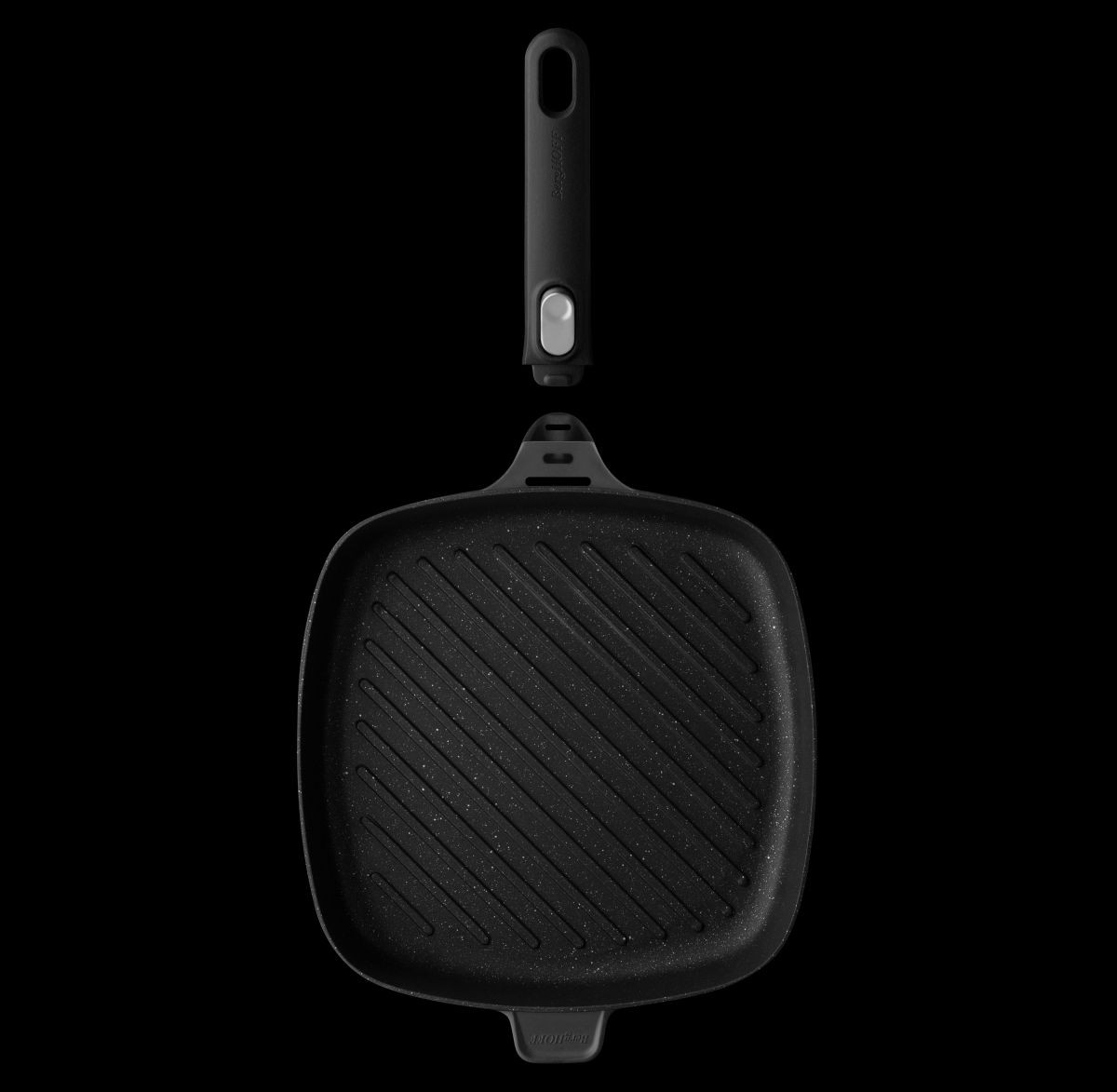 BergHOFF Сковорода-гриль с съёмной ручкойВ данный момент этот товар отсутствует в продаже. Возможно, у нас найдется аналогичный или похожий товар здесь. Серия: Gem Сковорода-гриль из новой коллекции Gem. Изготовлена из литого алюминия, обладающего высокой теплопроводностью и экологичностью. Снаружи имеет покрытие, устойчивое к царапинам и механическим повреждениям. Внутри – современное антипригарное покрытие (Ferno Green), не содержащее вредные вещества и имеющее идеально гладкую поверхность для комфортного ухода за посудой. Дно – цельнолитой алюминиевый диск, с высокой теплопроводностью, прекрасно аккумулирует и распределяет тепло по всей поверхности. Удобный механизм снятия/крепления ручки (одним щелчком). Без крышки. Подходит для всех типов плит. Рекомендуется ручная мойка. |