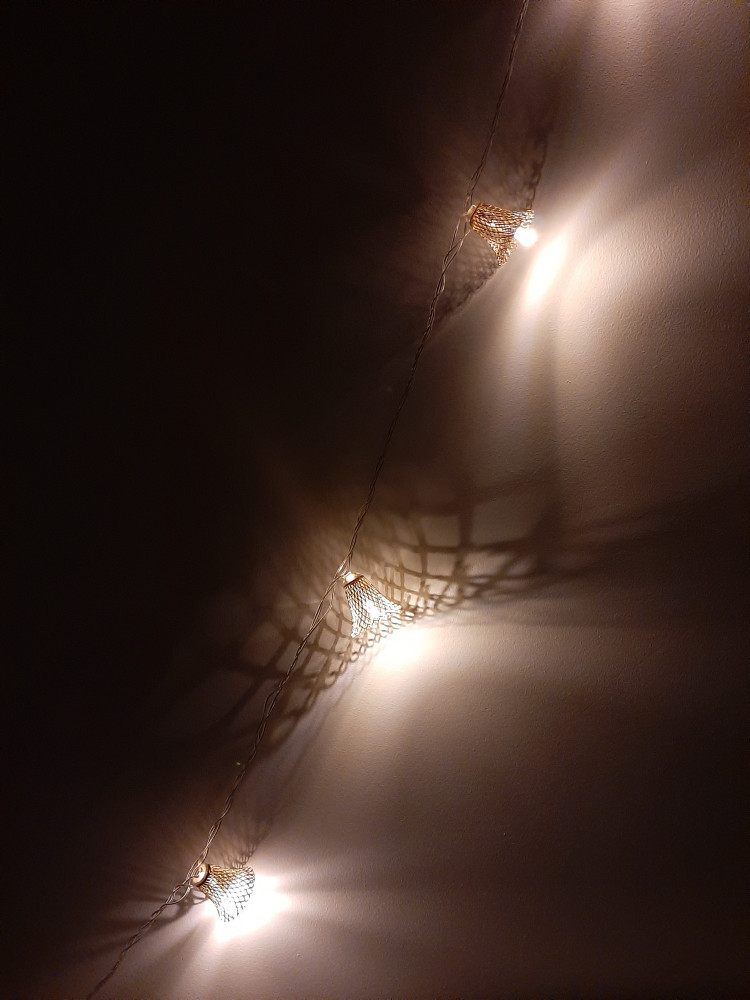 Милая гирлянда, чудесные колокольчики, в темноте на стенах красивые узоры. Спасибо