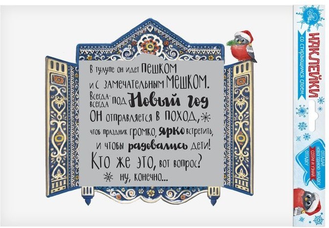 Арт Узор Наклейки интерьерные «Дедушка Мороз» (со стирающимся слоем)В данный момент этот товар отсутствует в продаже. Возможно, у нас найдется аналогичный или похожий товар здесь. Серия: Наклейки со стирающимся слоем Украшение интерьера к Новому Году – это очень увлекательный процесс! А с помощью наклеек со стирающимся слоем вы сможете превратить его в весёлую игру, которая очень понравится детям! На каждой наклейке написана новогодняя загадка. Угадайте её и сотрите защитный слой. Под ним вы найдёте картинку, которая и будет ответом на вопрос. Такая игра поднимет настроение всем членам семьи! При снятии декор не оставляет следов. |