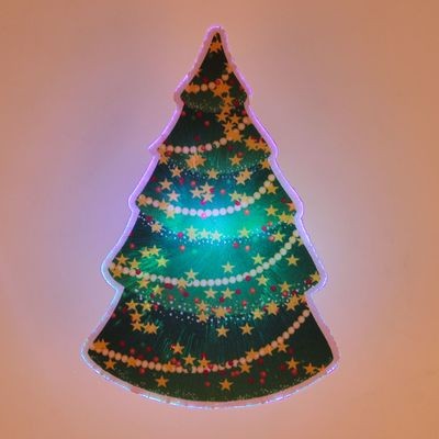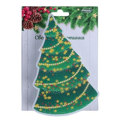 Елочка красивая и горит разными огнями. Размер думала больше будет, как плакат, оказался очень маленький. И сломана прищепка, ее вообще даже не вложили.