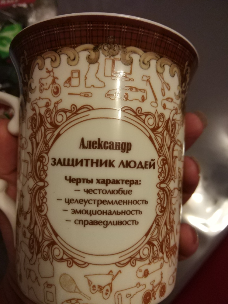 Хорошая кружка. Большая. На обратной стороне написано, что обозначает имя. Жаль только, что, не все имена есть в наличии. Так бы, заказала и с другими именами тоже.