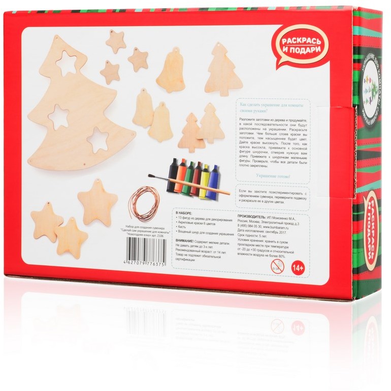 Наборы «Создай украшение для комнаты» – это увлекательное творчество для детей, подростков и всей семьи. Раскрашивайте заготовки удобными красками в тюбиках, как у настоящих художников, а элементы декора располагайте на свой дизайнерский вкус. Деревянные заготовки выполнены из экологически чистого материала, такой замечательный набор для творчества станет желанным новогодним подарком!