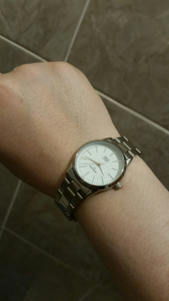 Часы очень аккуратные. Правда думала они будут по обьемнее. Не на худую руку, придется убирать несколько звеньев.