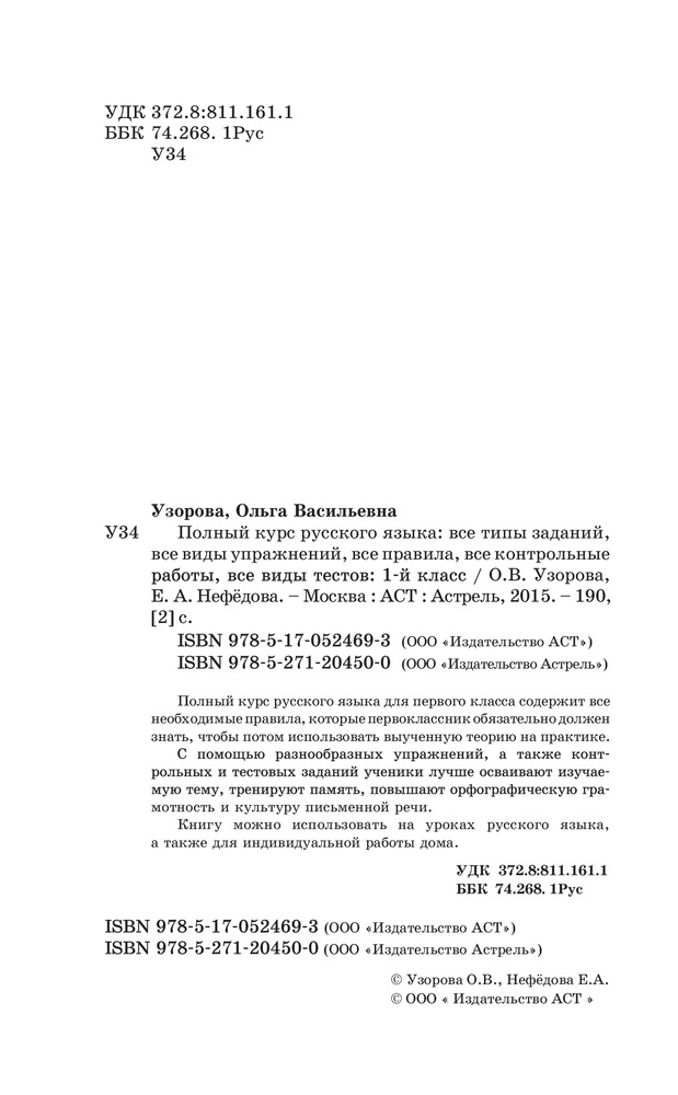 Полный курс русского языка. 1 классОльга Васильевна Узорова, Елена Алексеевна Нефедова +51 охват тем соответствие учебнику интересные упражнения