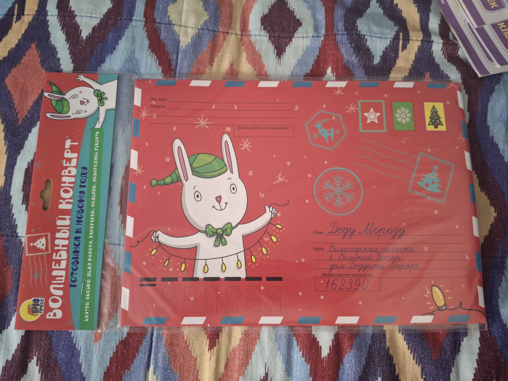 В данный момент этот товар отсутствует в продаже. Возможно, у нас найдется аналогичный или похожий товар здесь. Внутри этого волшебного конверта малыш найдёт всё необходимое для подготовки к празднику. Его ждут весёлые раскраски с заданиями, рецепты, поделки и бланк для письма Деду Морозу!