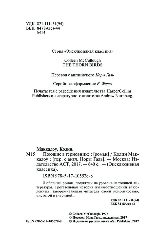 Поющие в терновнике+184 твердый переплет плотная бумага закладка компактный формат интересное содержание мелкий шрифт