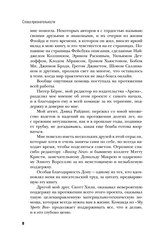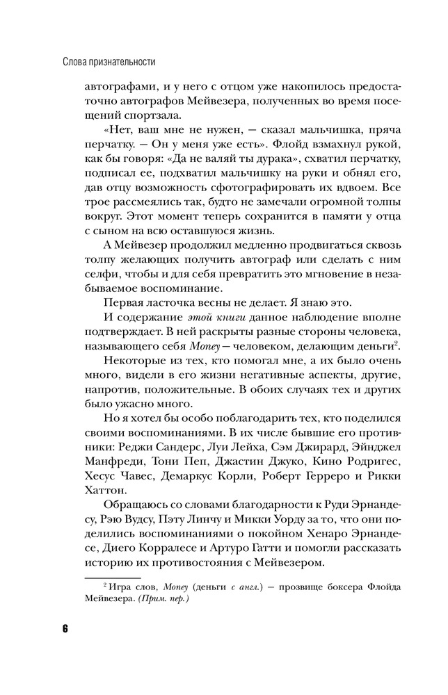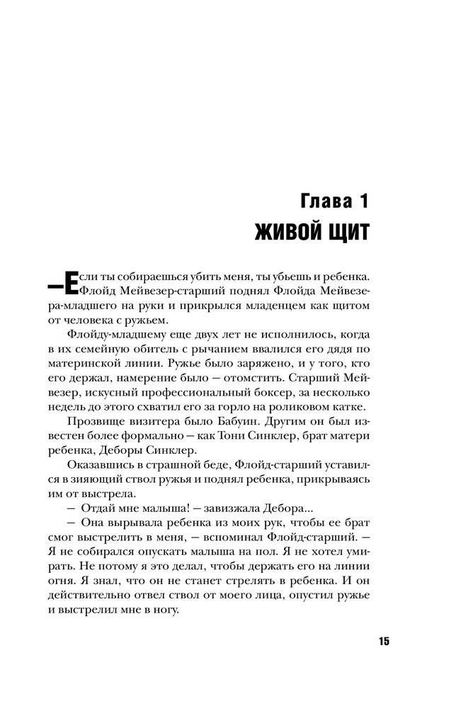 В данный момент этот товар отсутствует в продаже. Возможно, у нас найдется аналогичный или похожий товар здесь. Серия: Иконы спорта Флойд был приговорен к тюремному сроку, прошел через семейные дрязги и множественные медиаскандалы, при этом все забывают, что он — превосходный боксер. Не лучший на все времена, его имя не скандируют на каждом углу, как в случае Майка Тайсона или Мохаммеда Али. Однако это один из самых техничных боксеров, когда-либо шнуровавших свои перчатки. И что самое важное — ни разу не побежденный.