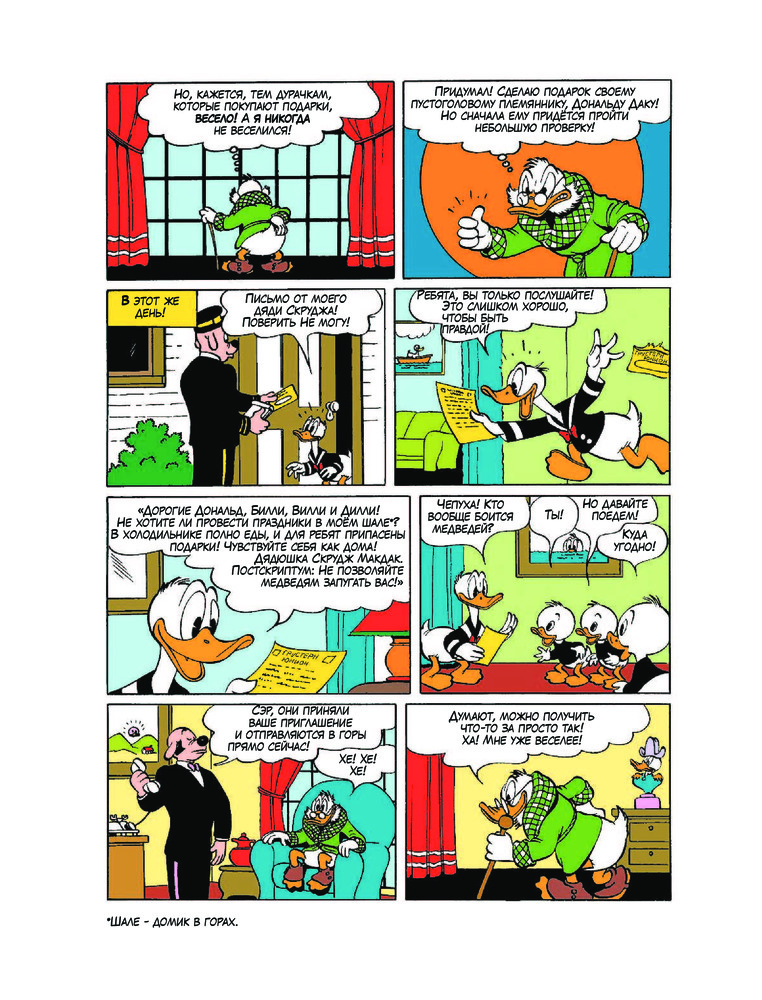 Дональд Дак. Рождество на Медвежьей гореВ данный момент этот товар отсутствует в продаже. Возможно, у нас найдется аналогичный или похожий товар здесь. Серия: Disney Comics. Утиные истории Карл Баркс, один из величайших иллюстраторов ХХ века, автор более 500 классических «Утиных историй», впервые представляет публике Дядюшку Скруджа в комиксе «Рождество на Медвежьей горе»! Мы знакомимся с Самым Богатым Селезнем в мире, когда он устраивает хитроумный розыгрыш, чтобы проверить Дональда на храбрость. Разумеется, результат этого испытания будет весьма неожиданным!Страницы этого сборника наполнены юмором и приключениями: Дональд становится приёмным сыном кенгуру, вместе сплемянниками спасается от извержения вулкана и от призрака в доспехах, похищающего уток, и многое, многое другое! |