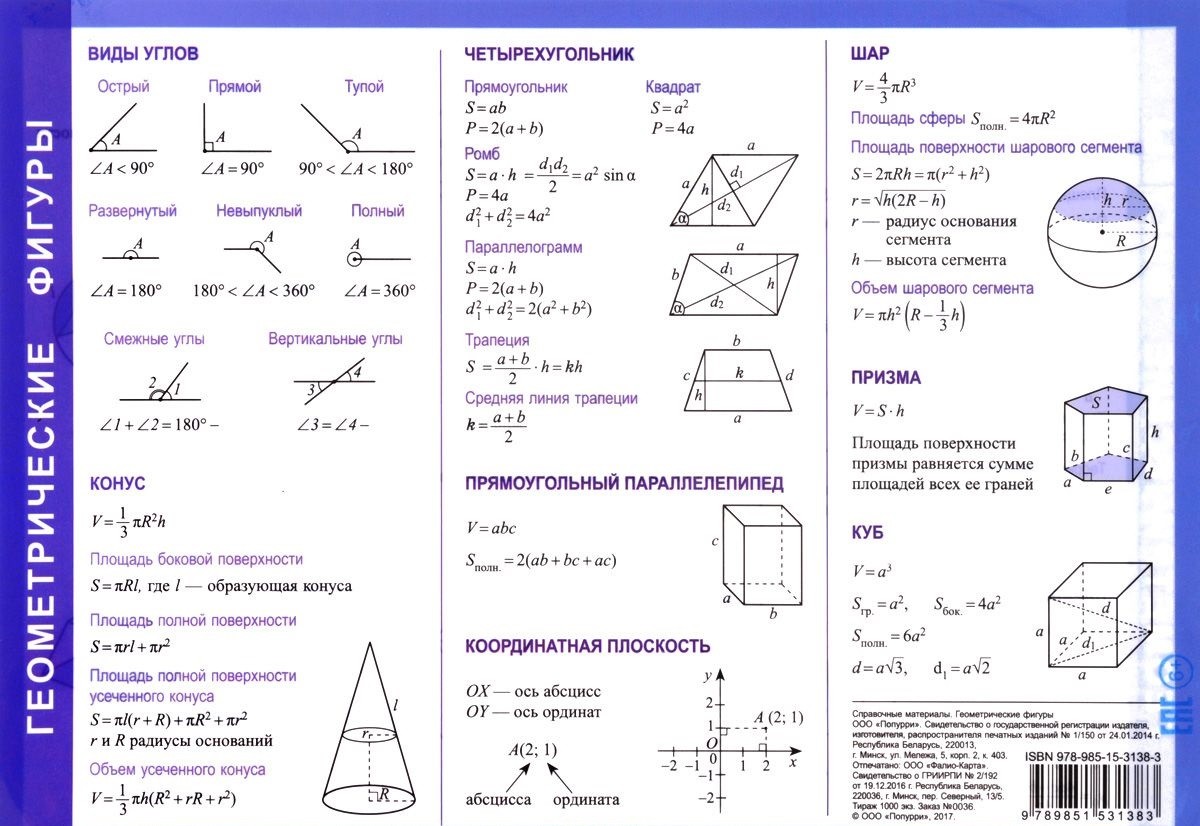 Справочные материалы. Геометрические фигуры-35% +21 удобно шпаргалки заламинирована