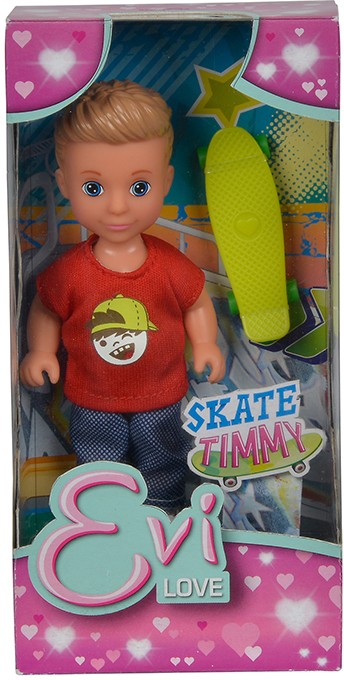 Simba Кукла «Тимми-скейтбордист»В данный момент этот товар отсутствует в продаже. Возможно, у нас найдется аналогичный или похожий товар здесь. Серия: Evi Love Тимми-озорник летом всегда пропадает во дворе. Он запрыгивает на свой яркий скейт, отталкивается одной ногой и мчит на всей скорости навстречу новым приключениям! Его озорной образ дополняют стильные джинсы, яркая футболка с принтом и белоснежные кроссовки. И в этом сезоне у Тимми новая прическа! Прекрасное дополнение для игр с малышкой Еви. Кукла «Тимми Скейтбордист» приведет в восторг вашу малышку |