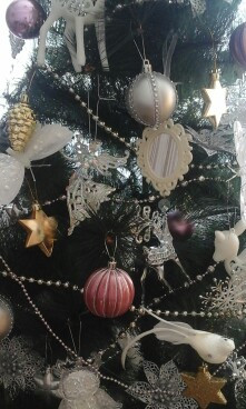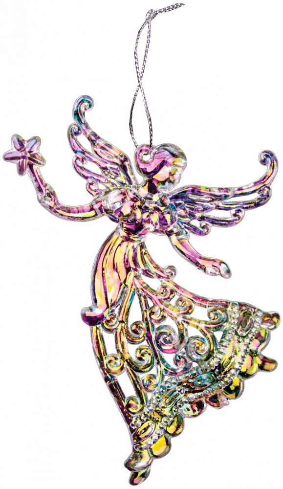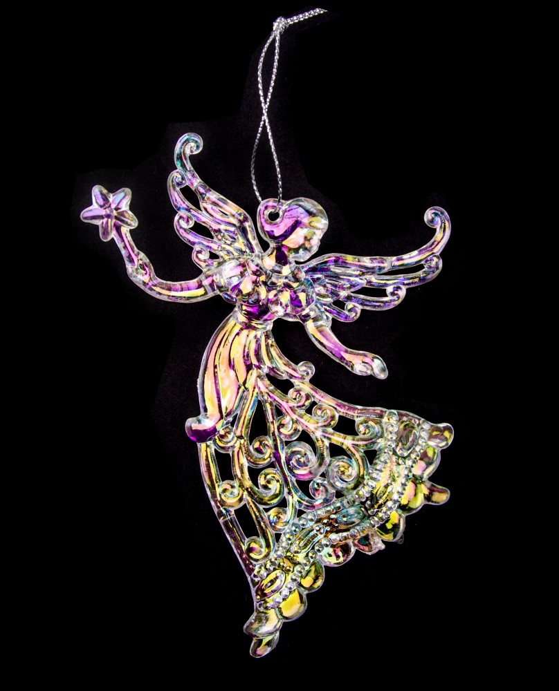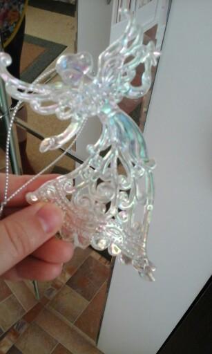 Очень симпатичное украшение. Фото не передает цвета, потому что он меняется в зависимости от угла освещения. Игрушка пластиковая, прозрачная, чуть перламутровая, отливает зеленым, голубым, розовым, фиолетовым, желтым. Сделана аккуратно, смотрится хорошо