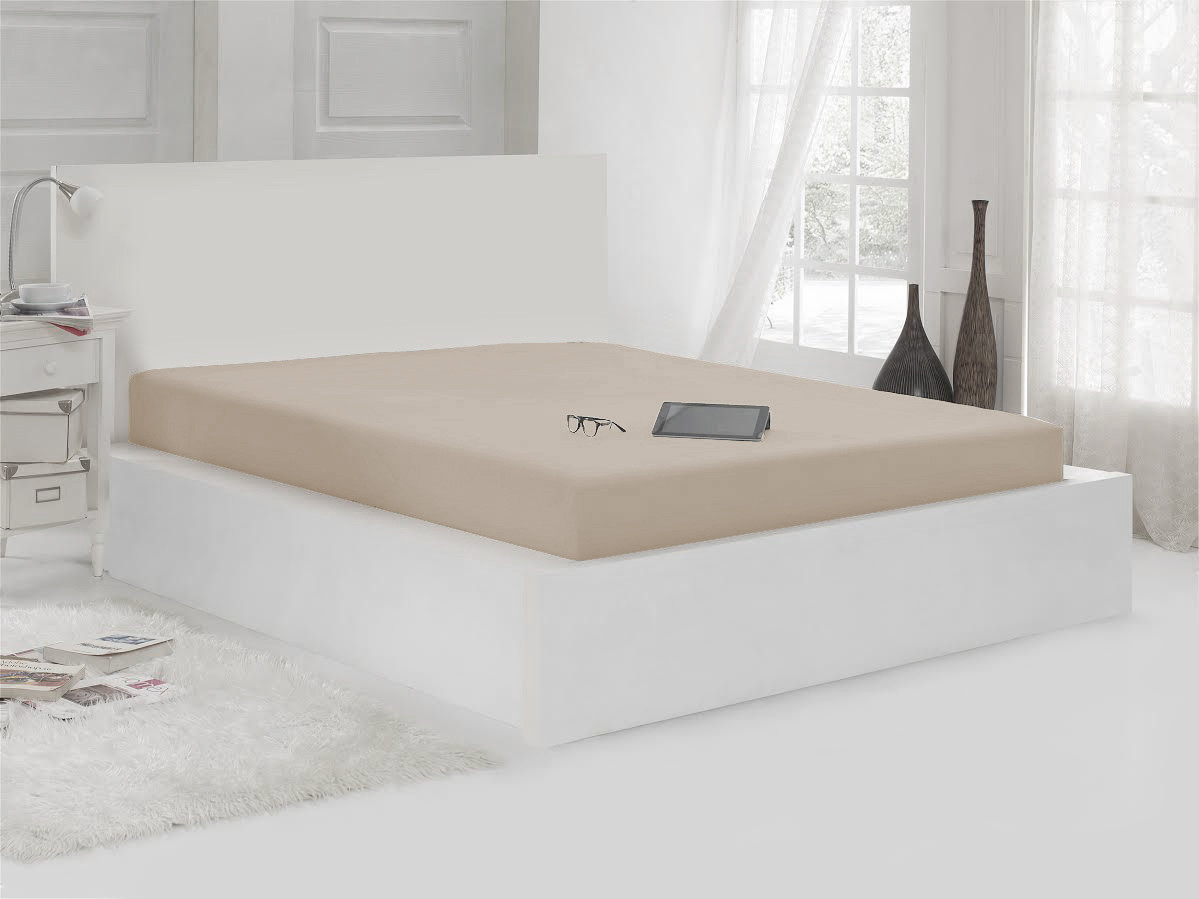 | Karna Простыня трикотажная на резинке (2-спальная, хлопок, 160x200+30 см), цвет светло-кофейный
