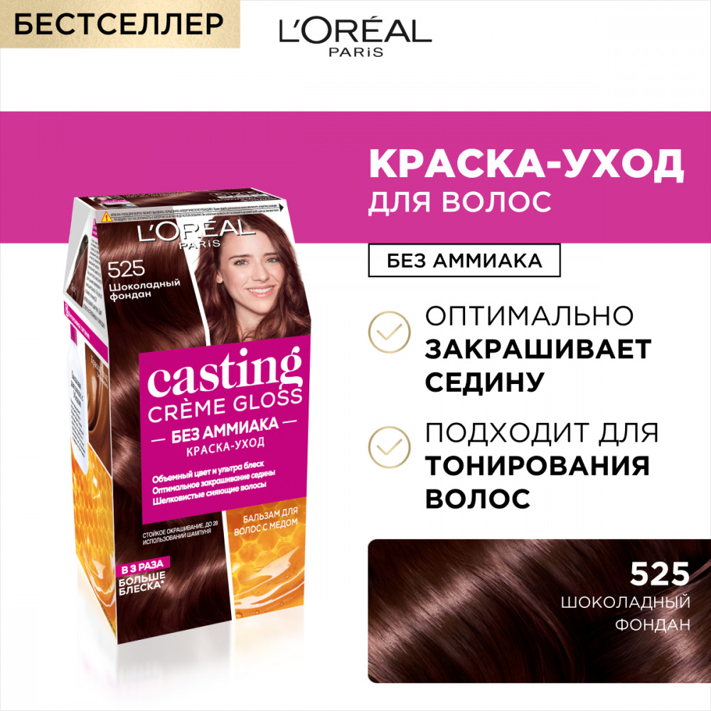 L'Oreal Paris Краска-уход для волос стойкая «Casting Creme Gloss» без аммиака, оттенок 525 Шоколадный фондан