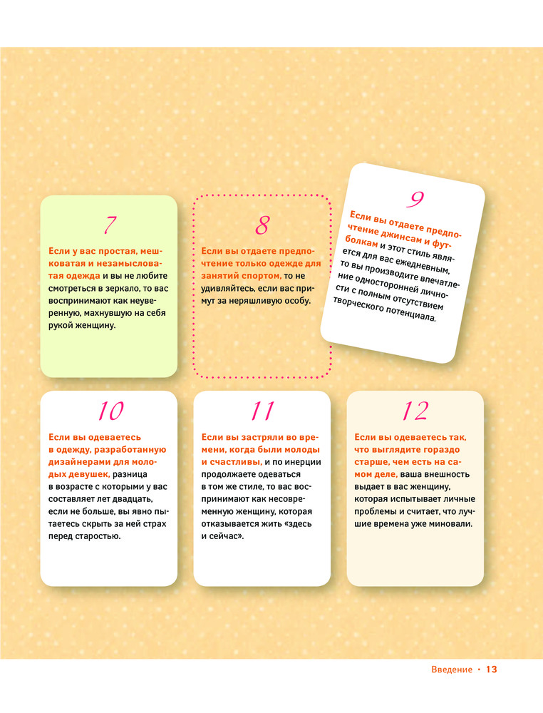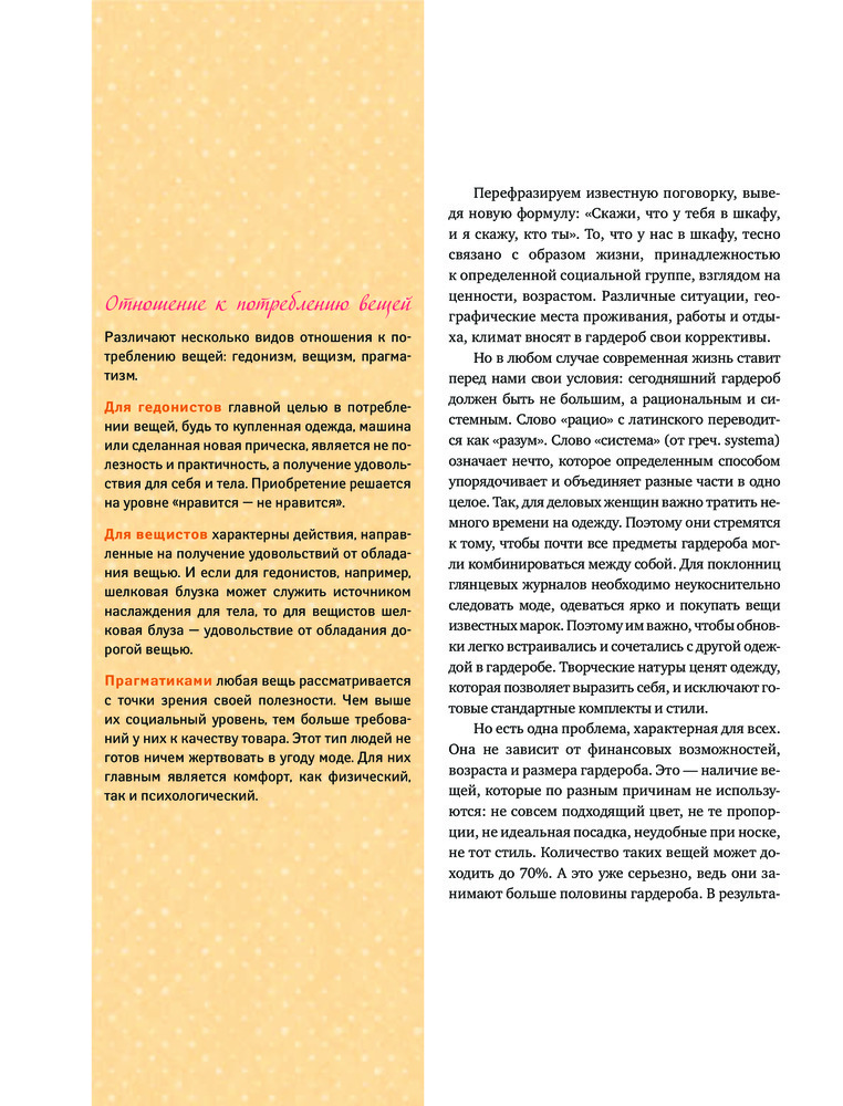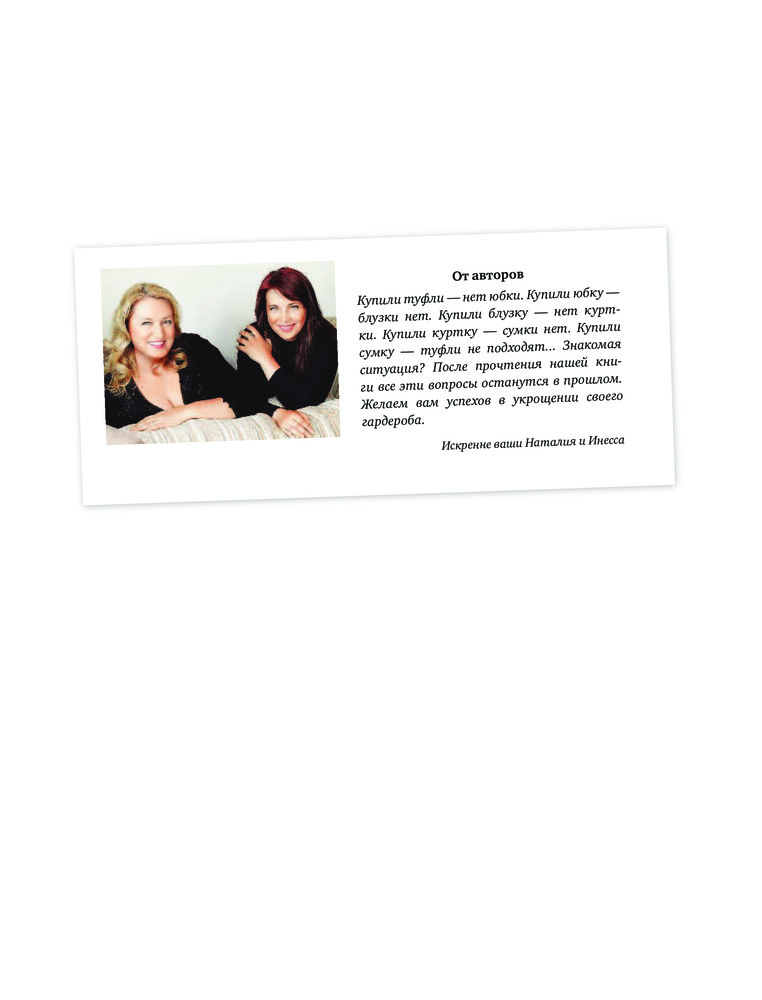 Вы научитесь строить базы своего гардероба в зависимости от сезона, создавать стилевые капсулы для разных жизненных ситуаций, правильно подбирать вещи в магазине при покупке, акцентировать внимание на достоинствах фигуры, умело скрывая ее недостатки. Авторы разобрали самые распространенные ошибки при формировании гардероба и дали ценные советы, как не попасться в ловушку излишнего следования за модой.