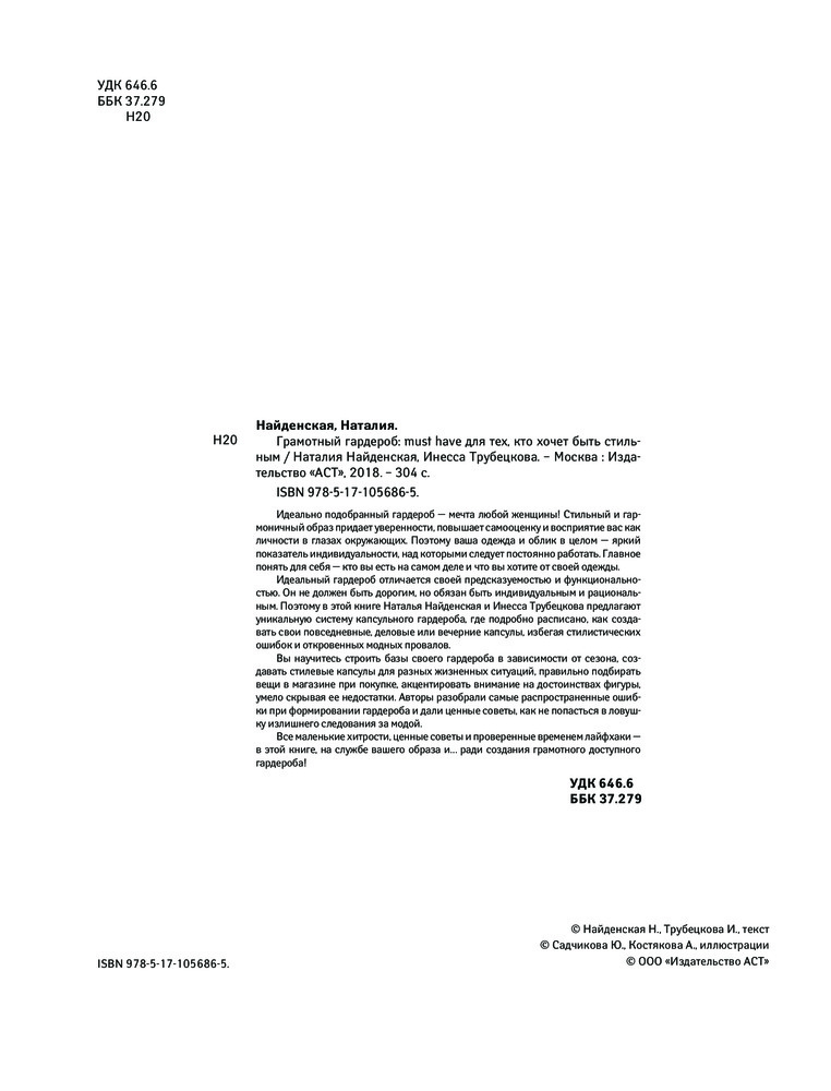 Идеальный гардероб отличается своей предсказуемостью и функциональностью. Он не должен быть дорогим, но обязан быть индивидуальным и рациональным. Поэтому в этой книге Наталья Найденская и Инесса Трубецкова предлагают уникальную систему капсульного гардероба, где подробно расписано, как создавать свои повседневные, деловые или вечерние капсулы, избегая стилистических ошибок и откровенных модных провалов.