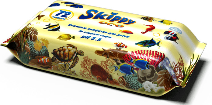 Skippy Влажные салфетки «Skippy Eco»В данный момент этот товар отсутствует в продаже. Возможно, у нас найдется аналогичный или похожий товар здесь. Skippy Eco – влажные салфетки эконом класса, имеющие размер 15 х 20 см. и обладающие приятным легким нейтральным ароматом, в красивой, удобной, имеющей веселый дизайн упаковке без пластиковой крышки, в количестве 72 шт. |