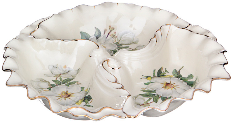 Очень красивая вещица. Правда цвет не белый , а светло-оливковый. Обязательно нужно подбирать что-то такого же цвета. У меня этажерка, салфетница и соусники. На фоне белой посуды смотрится очень презентабельно.