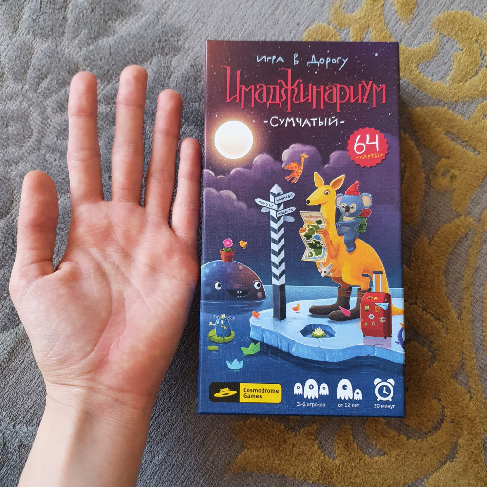 На мой взгляд, такая "сумчатая" версия игры даже удобнее стандартной, и дома можно играть, и с собой взять, коробка маленькая, удобнее обычной. Передвижение фишек - по краям коробки, классная идея, фишки не падают даже в походных условиях. Места для дополнительного набора карт в коробке также достаточно, если нужно. Играть можно и детям, и взрослым, и вместе - всем интересно, мы вообще фанаты этой игры, хорошо развивает ассоциативное мышление.