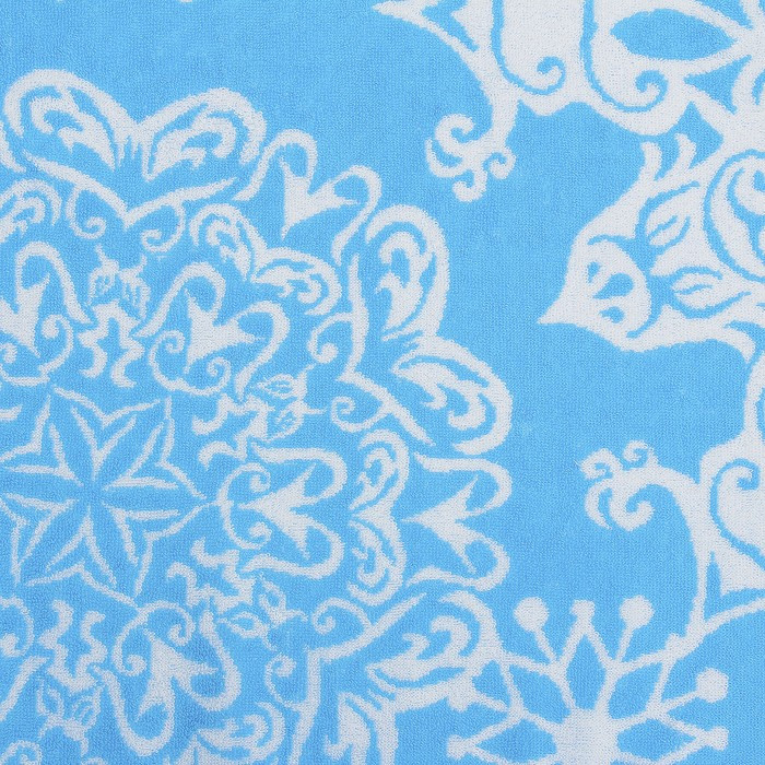 Полотенце очень красивое, нежный рисунок, приятный оттенок голубого, мягкое, в меру пушистое.