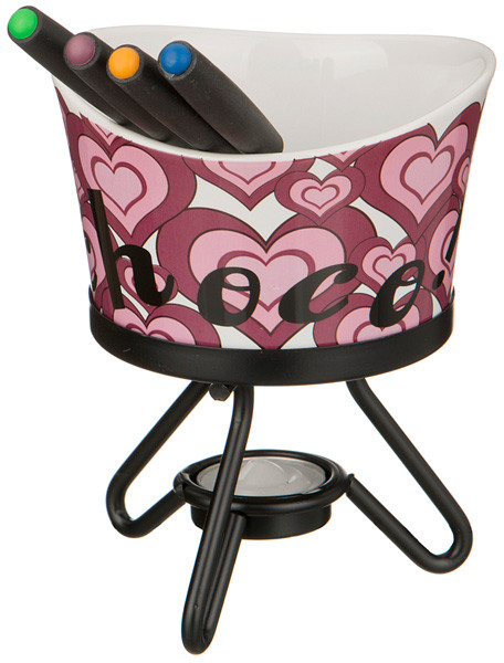 В набор для приготовления фондю входят: фондю - 1 шт, вилочки - 4 шт, подставка - 1 шт. Греющая свеча входит в комплект.