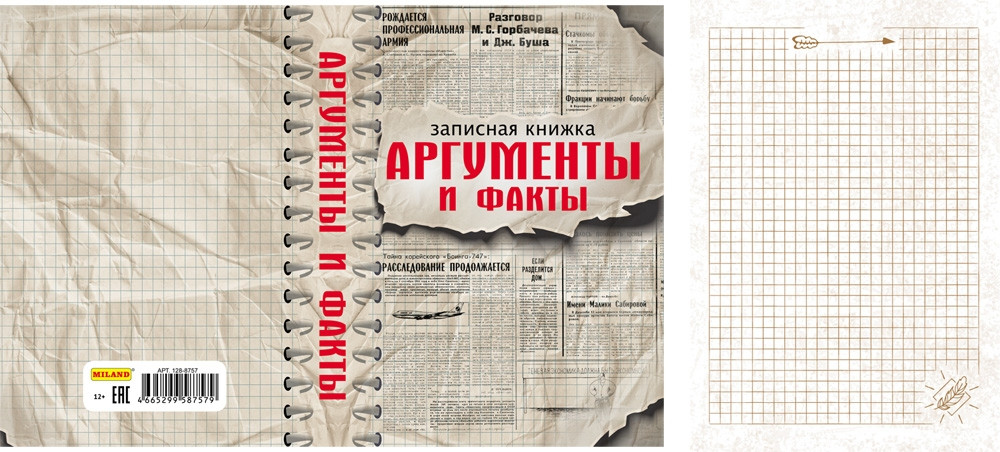 Miland Записная книжка «Аргументы и факты» (А5, 128 листов)В данный момент этот товар отсутствует в продаже. Возможно, у нас найдется аналогичный или похожий товар здесь. Записная книжка — компактное и практичное полиграфическое изделие, предназначенное для записей и заметок. Такой аксессуар прекрасно подойдёт для фиксации повседневных дел. |