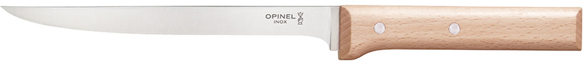 Филейный нож Opinel № 121 с тонким, острым и очень гибким лезвием 18 см позволяет с лёгкостью отделять кожу и жир от мяса, рыбы и птицы. Нож также отлично подходит для нарезания тонкими ломтиками вареного мяса, рыбы, а также для фуа-гра и терринов.
