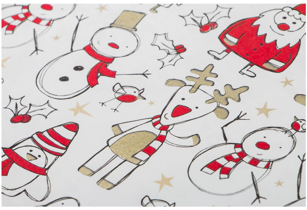 Хорошая оберточная бумага. Взяла 2 вида с новогодними рисунками. Рисунок довольно милый, ничего лишнего. Имеет покрытие из цветных блесток. Листы довольно большие, мне хватило 2 шт. для упаковки телевизора)). В комплекте с красной атласной лентой подарки выглядят празднично. Рекомендую.