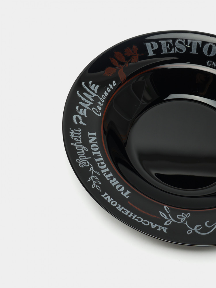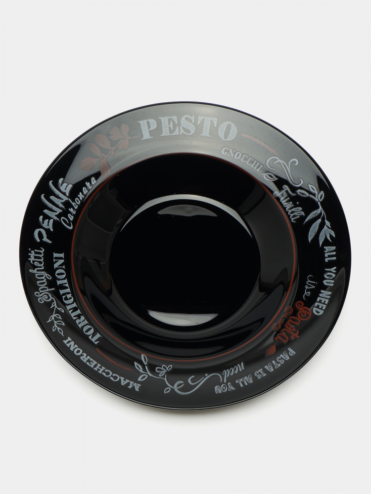 Красивая тарелка, в меру большая, но думала, что бортики будут шире, а сама емкость чаши меньше, по форме она выглядит как просто увеличенная суповая тарелка. Для тарелки под пасту чуть дизайн не дотягивает, немного по другому должна быть, мое мнение.