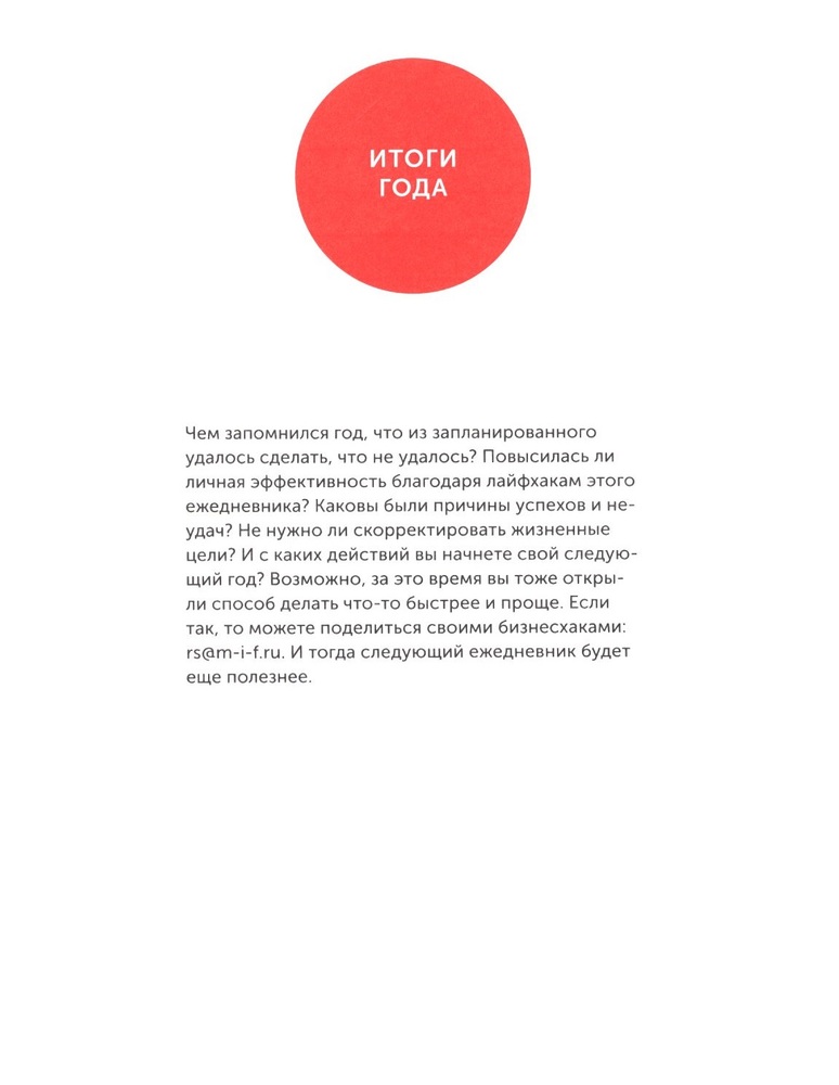 Максимально полезный ежедневник. Экономьте время, деньги и силыВ данный момент этот товар отсутствует в продаже. Возможно, у нас найдется аналогичный или похожий товар здесь. Серия: МИФ. Личное развитие Ежедневник с инструментами для развития на каждую неделю, который поможет вам становится лучше и продуктивнее в течение всего года. |