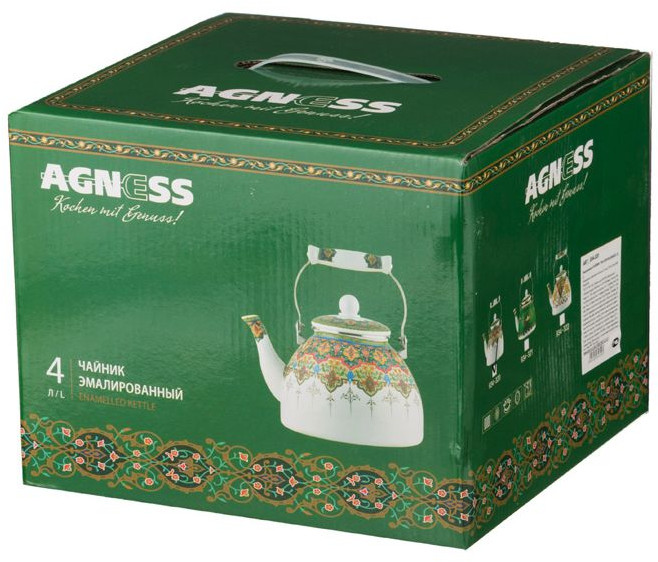 Чайник изготовлен из высококачественной стали с эмалированным покрытием. Такое покрытие защищает сталь от коррозии, придает посуде гладкую стекловидную поверхность и надежно защищает от кислот и щелочей.