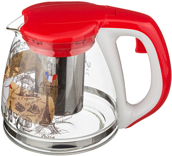Удобный заварочный чайник, хорошее ситечко, крышка открывается при помощи кнопки на ручке .