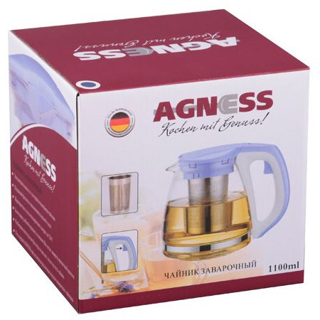 Стальной фильтр гарантирует прозрачность и чистоту напитка от чайных листьев, при этом сохранив букет и насыщенность чая. Прозрачные стенки чайника дают возможность насладиться насыщенным цветом заваренного чая. Изящный заварочный чайник Agness будет прекрасно смотреться в любом интерьере. Подходит для мытья в посудомоечной машине.