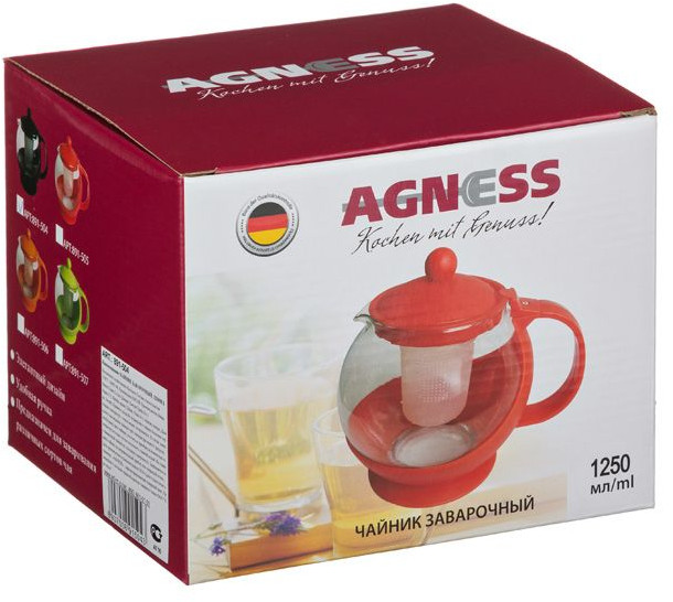 Заварочный чайник Agness изготовлен из термостойкого стекла, фильтр выполнен из полипропилена. Изделия из стекла не впитывают запахи, благодаря чему вы всегда получите натуральный, насыщенный вкус и аромат напитков.