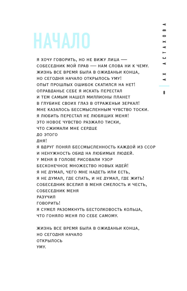 С нетерпением ждала этой книги! Обожаю стихи Ах Астаховой, поэтому не раздумывая заказала книгу. Красивое оформление, шрифт, цвета страниц. Одним словом, я в восторге. А самое главное - цена соответствует! Спасибо, flip.kz за доступность в цене и быструю доставку!
