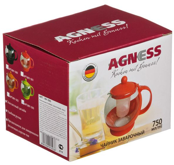 Заварочный чайник Agness изготовлен из термостойкого стекла, фильтр выполнен из полипропилена. Изделия из стекла не впитывают запахи, благодаря чему вы всегда получите натуральный, насыщенный вкус и аромат напитков.