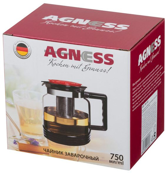Заварочный чайник Agness изготовлен из термостойкого стекла, фильтр выполнен из нержавеющей стали. Изделия из стекла не впитывают запахи, благодаря чему вы всегда получите натуральный, насыщенный вкус и аромат напитков.