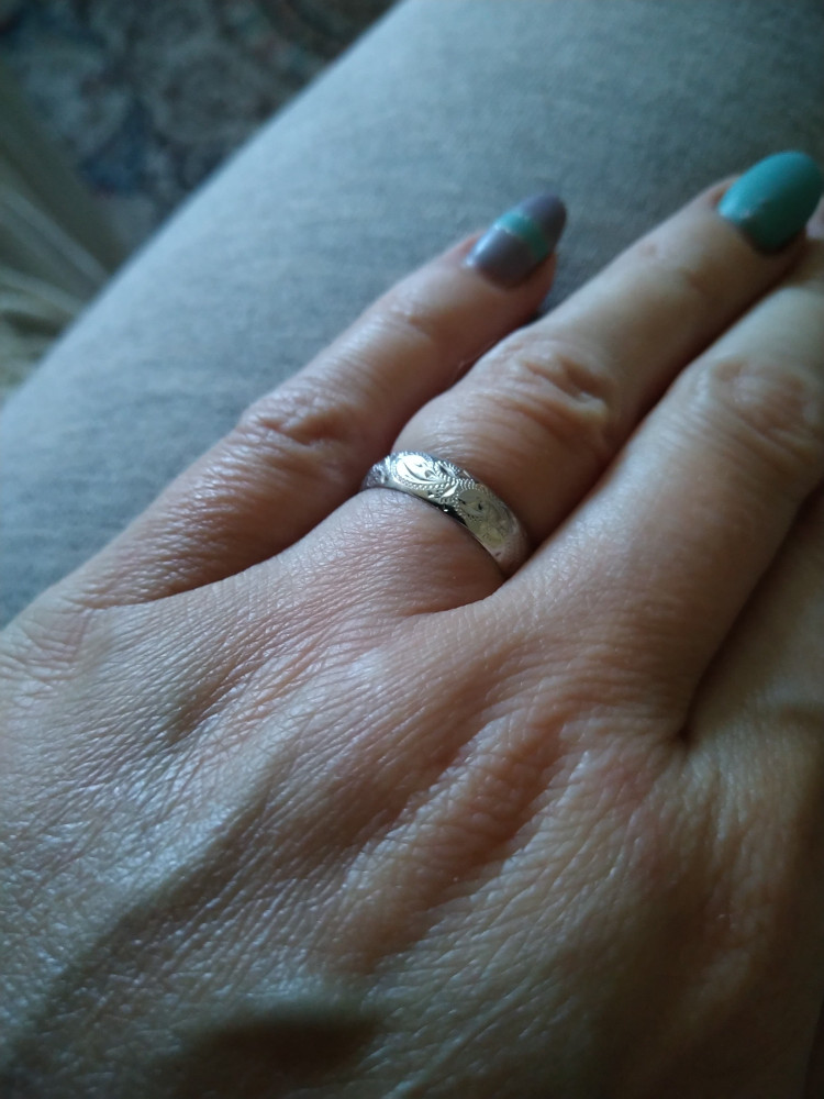 Колечко понравилось, правда чуть маломерит! Я здесь же покупала обручальное с позолотой 18 размер, так вот это колечко размер один в один с ним, хотя на бирке написано 18,5. Хорошо, что это для меня не критично, буду носить с удовольствием.