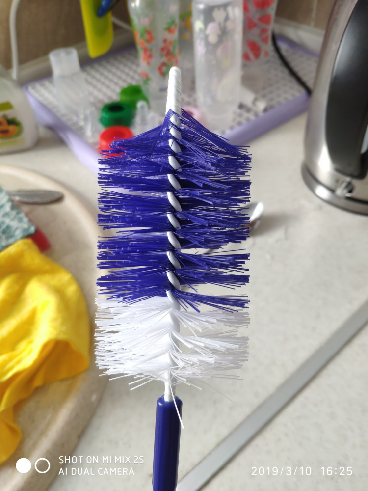 Ершик не понравился. Дно бутылочки с ним не помыть. ёршик упирается своим металлическим основанием и губка просто не достаёт до дна. Губка постоянно отрывается, вообщем не рекомендую. Придется заказывать другую.