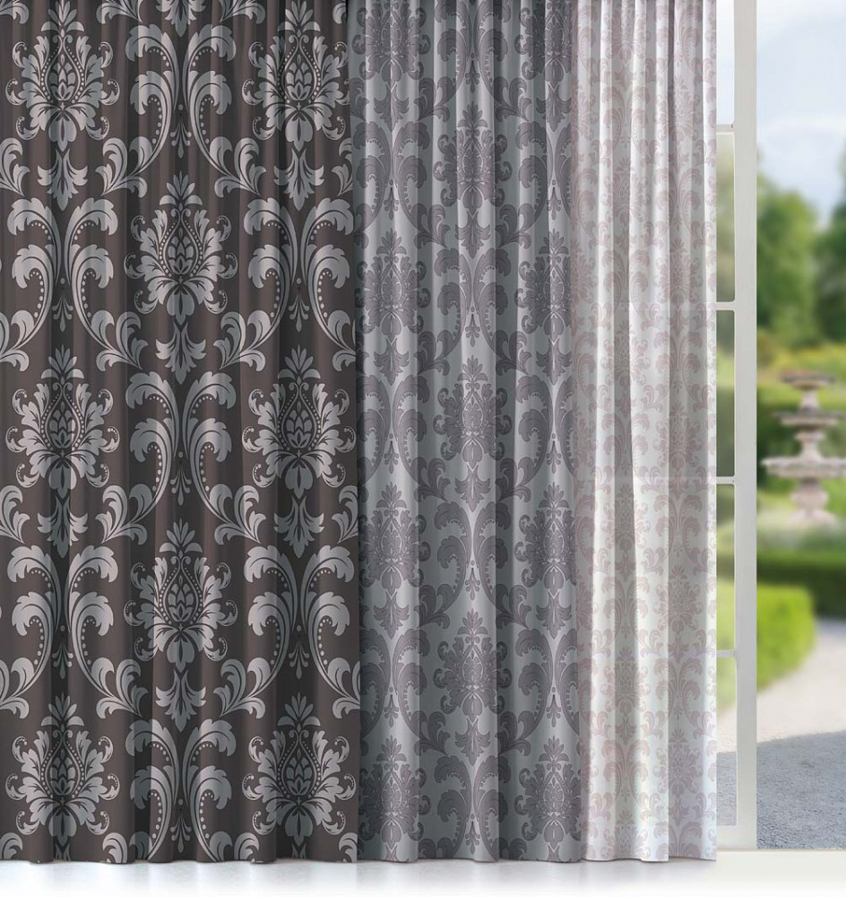 Природные тёмные цвета. Их оттенки наиболее популярны в интерьере. Практически беспроигрышный вариант, если вы затрудняетесь с выбором или хотите, чтобы портьеры в доме не привлекали особого внимания, но вписывались в интерьер. Даже контраст блэкаута с куда более светлыми тонами сатена и вуали не делает этот сдержанный комплект вызывающим. Он вступит в сбалансированный союз практически с любым цветом в интерьере.