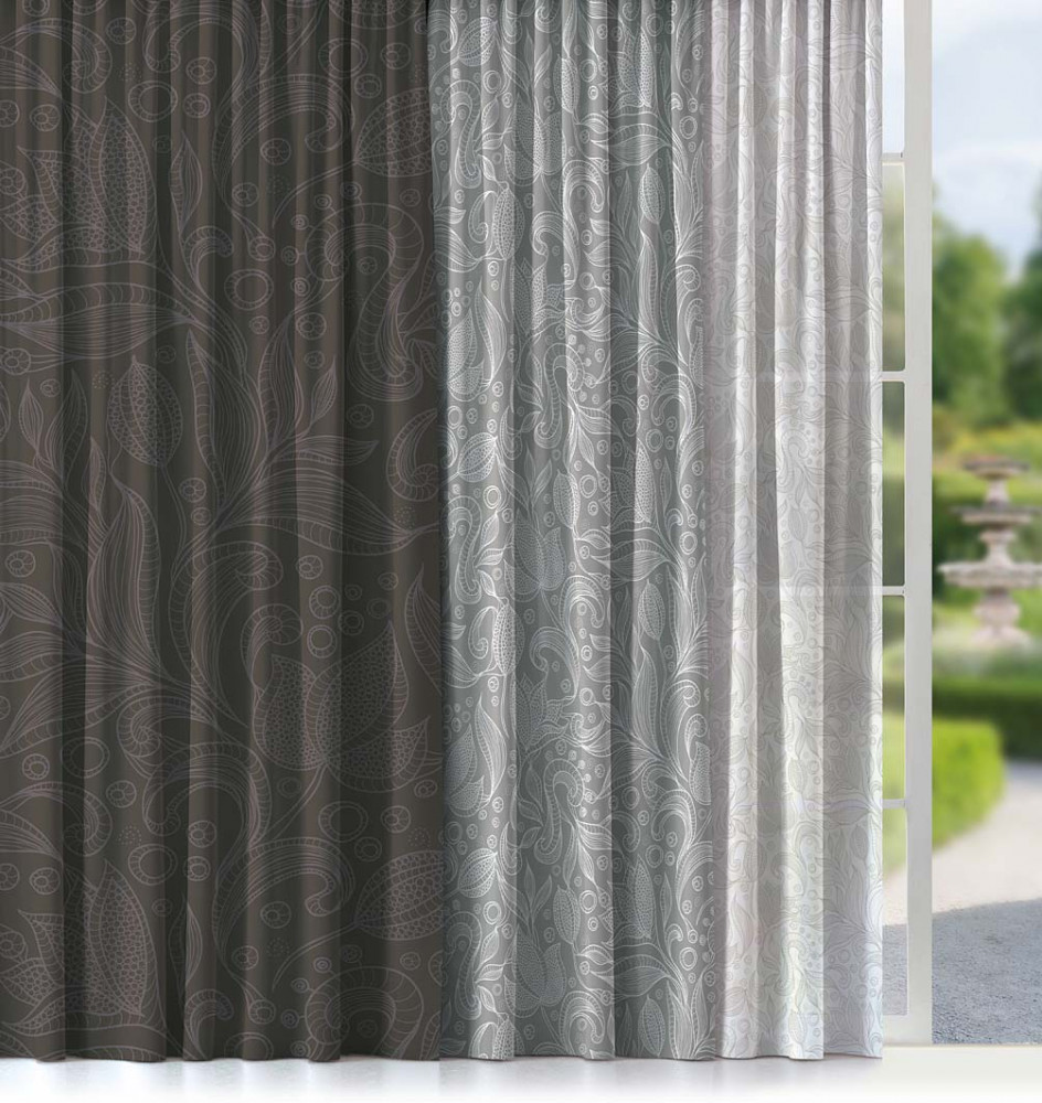 • гармонично подобранное сочетание для разных тканей - красивое и функциональное решение. Можно регулировать освещенность комнаты за счет штор разной светопроницаемости. Рисунок компаньона и основной шторы идеально дополняют друг друга, не нужно искать и подбирать;