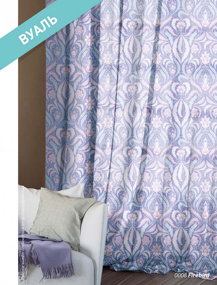 Шторы изготовлены из приятной на ощупь ткани вуаль, обеспечивают легкое затемнение и имеют декоративную функцию.