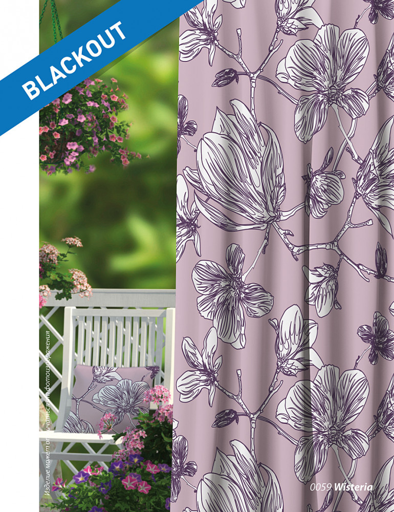• высокое эксплуатационное качество штор — рисунок нанесен цифровой печатной машиной, цвет и рисунок сохраняются при многократных стирках, материал не выгорает на солнце;