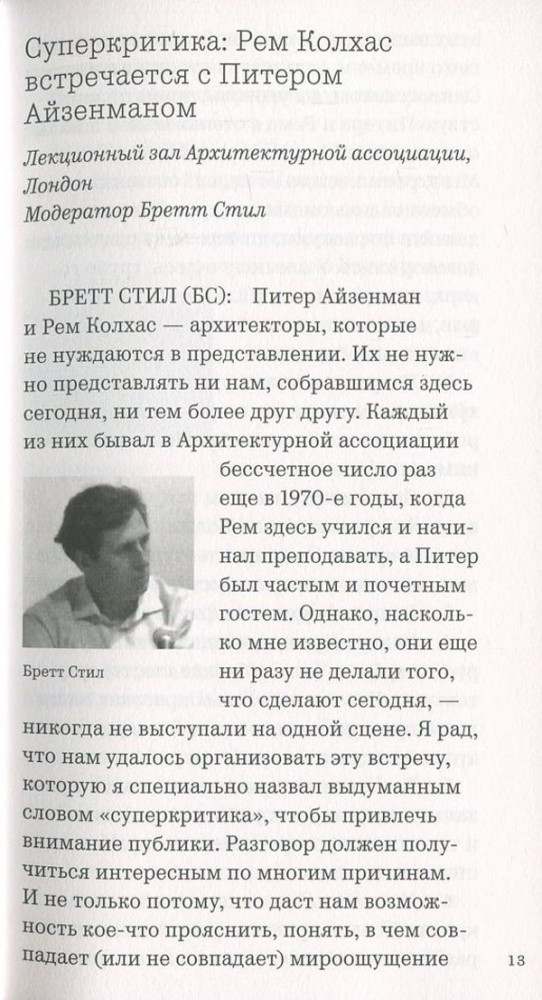 СуперкритикаВ данный момент этот товар отсутствует в продаже. Возможно, у нас найдется аналогичный или похожий товар здесь. «Суперкритика» Питера Айзенмана и Рема Колхаса напоминает деконструктивистское здание: диалог двух великих архитекторов сопровождают комментарии, документы и фотографии, а все это вместе составляет манифест амбициозной «критической архитектуры» — той, которая не только возводит дома, но и изучает устройство окружающей нас реальности. |