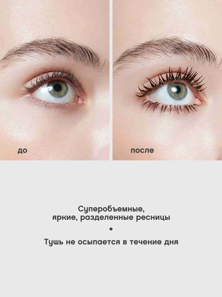 Это любовь на все времена, хорошая тушь. Не отпечатывается, стойко держится весь день, именно этот цвет, хорошо передаёт глубину и цвет голубых, зелёных, карих глаз.