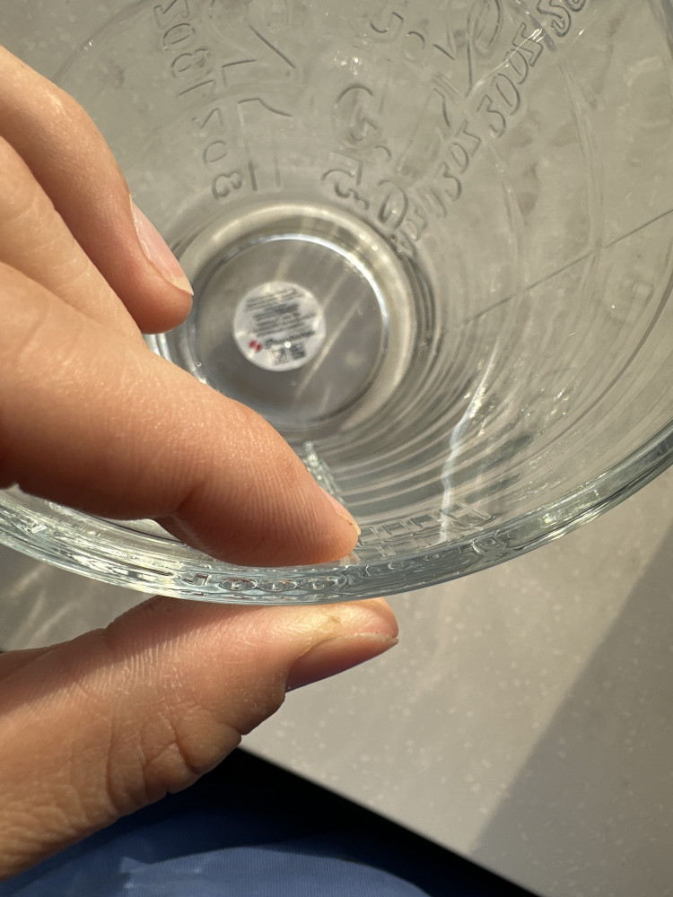 Качественный стакан, толстое стекло, без всяких цветных надписей. По точности объема не проверяла. Брала для фуд видео. Довольна. Рекомендую
