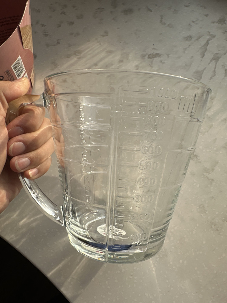 Давно хотела именно стеклянный мерный стакан, стекло толстое