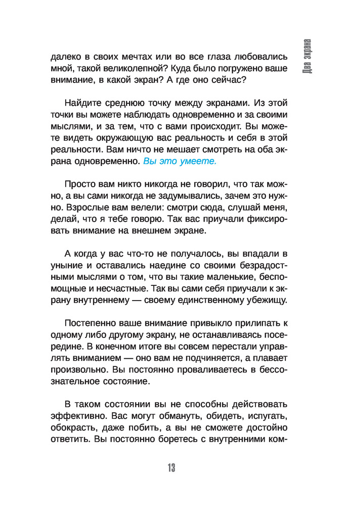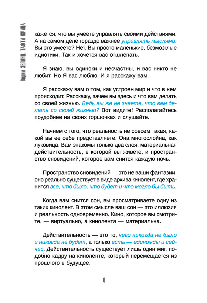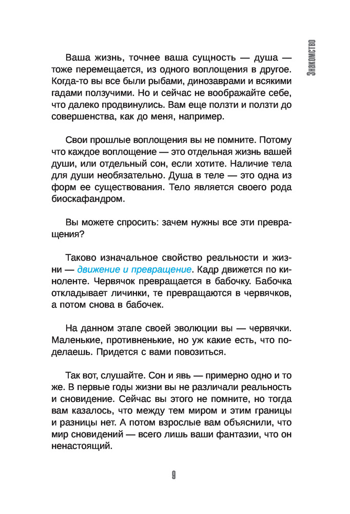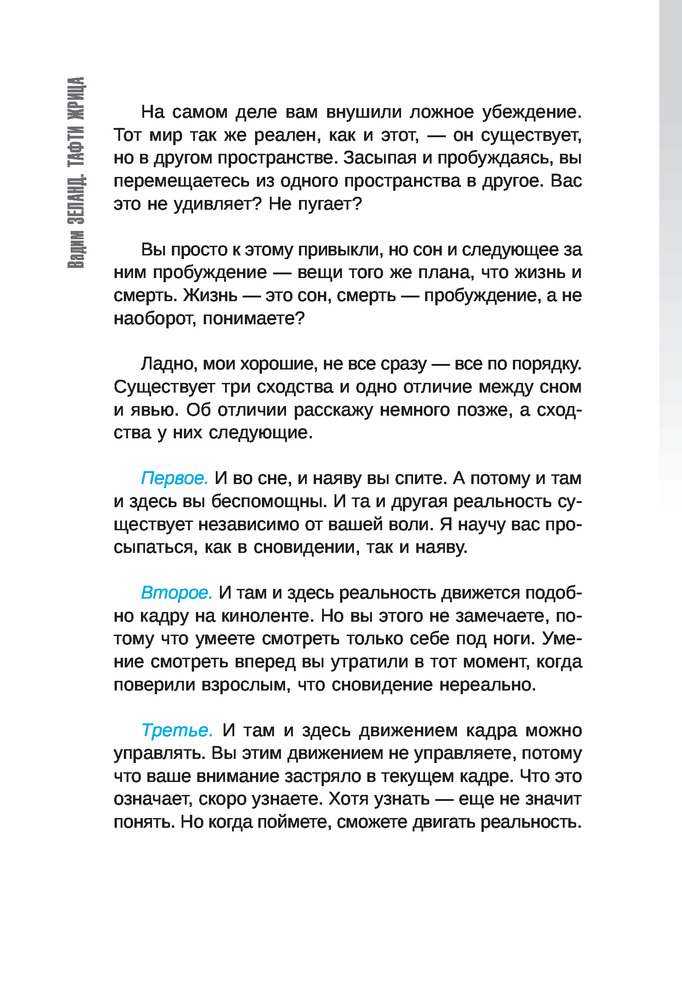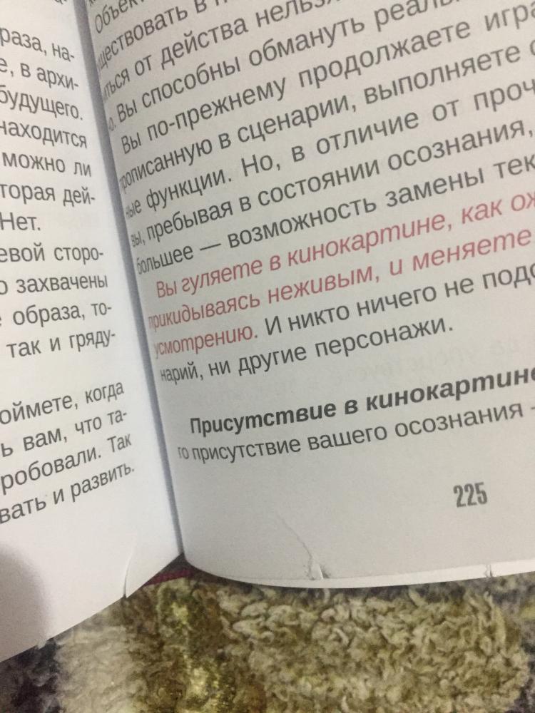 Новой информации для меня мало, так как я читала все ступени реальности автора. С чего причем и следует начинать, иначе данная книга будет непонятна читателю. Шрифт крупный, есть небольшие иллюстрации. Обращение автора к читателю может многим показаться специфическим и оттолкнуть. Но в этом и имеется своя изюминка, тем самым, автор хочет пробудить своего зрителя. Качество книги отличное.