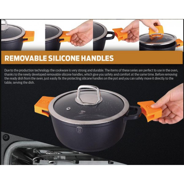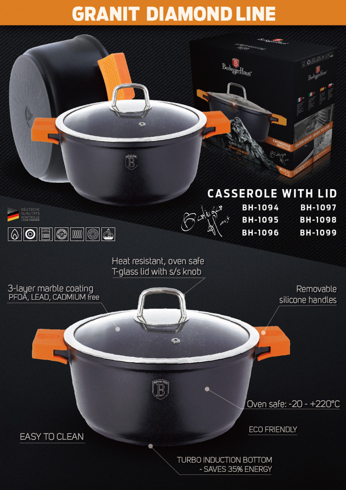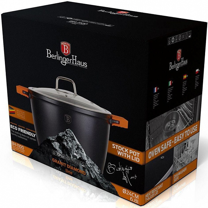 Berlinger Haus Кастрюля с крышкой «Granit Diamond Line» (6,8 л)В данный момент этот товар отсутствует в продаже. Возможно, у нас найдется аналогичный или похожий товар здесь. Серия: Granit Diamond Line Кастрюля изготовлена из литого алюминия с высококачественным мраморным антипригарным покрытием в 3 слоя. Такое покрытие предотвращает пригорание пищи и ее прилипание к стенкам. Оно абсолютно безопасно для здоровья и не выделяет вредных веществ во время готовки. |