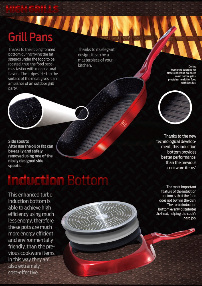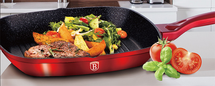 Berlinger Haus Сковорода-гриль «Burgundy Metallic Line»В данный момент этот товар отсутствует в продаже. Возможно, у нас найдется аналогичный или похожий товар здесь. Серия: Burgundy Metallic Line Рифленая поверхность сковороды имитирует решетку гриля и образует аппетитную корочку, при этом жир стекает в желобки, не давая продуктам контактировать с ним, что обеспечивает приготовление здоровой пищи. |